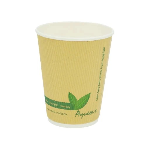 These ‘Kraft’ coloured paper cups feature triple wall insulation, have a ripple finish and are printed with the eco logo. All of the cups in this range have a plastic free lining, as well as an Aqueous coating, which is a fully biodegradable material, making these cups fully compostable.