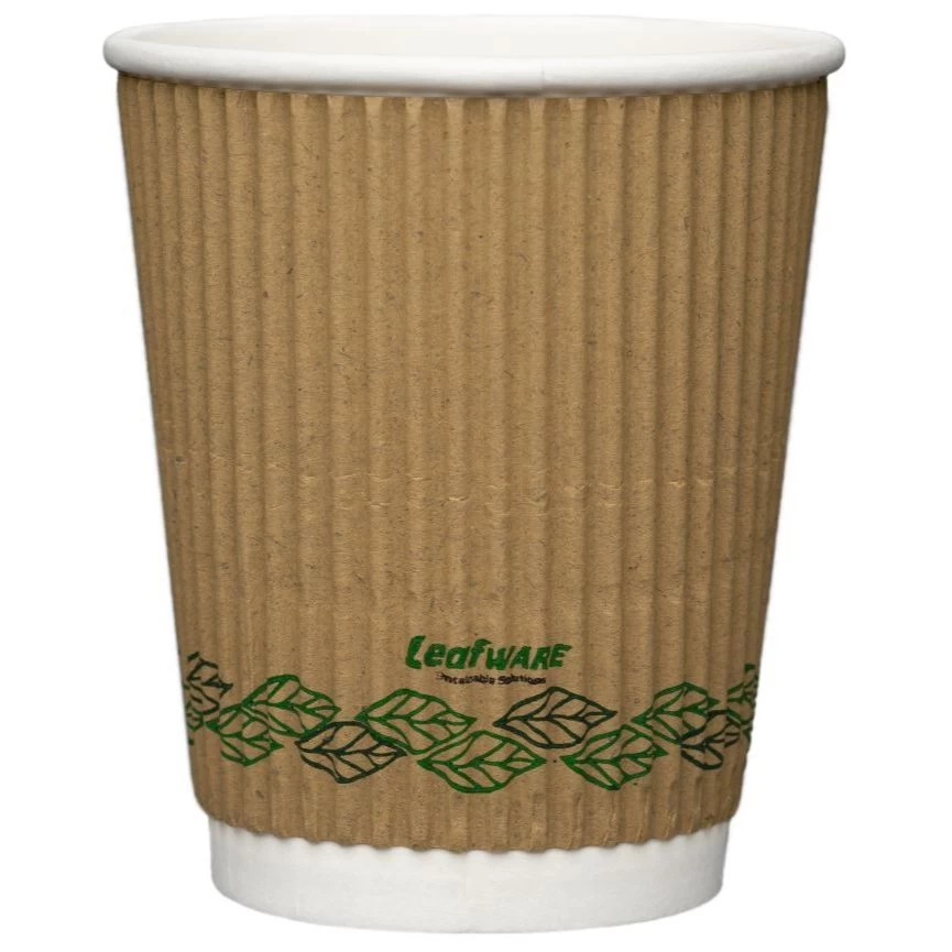 Disposable 12oz Leafware Triple Wall Coffee Cups – Pack of 100