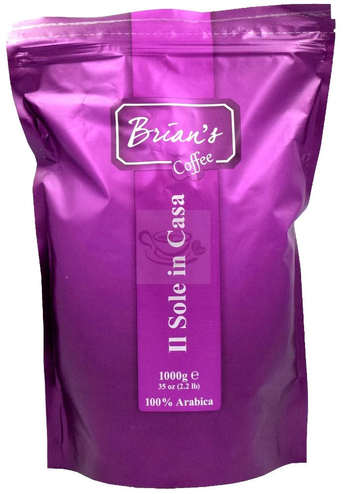 Brian’s Coffee Il Sole in Casa is a premium coffee made from 100% Arabica beans from Brazil (mild) and Antioquia (Highlands of Colombia). You will be surprised when you taste this coffee. Your taste buds will be stimulated by: a milk chocolatey cane sugar sweet taste, a creamy mouthfeel and a nice fresh aftertaste. Brian’s Coffee is slow roasted for optimal flavor development and packed in a 1kg resealable valve package. Delicious for espresso, cappuccino or caffe creme.