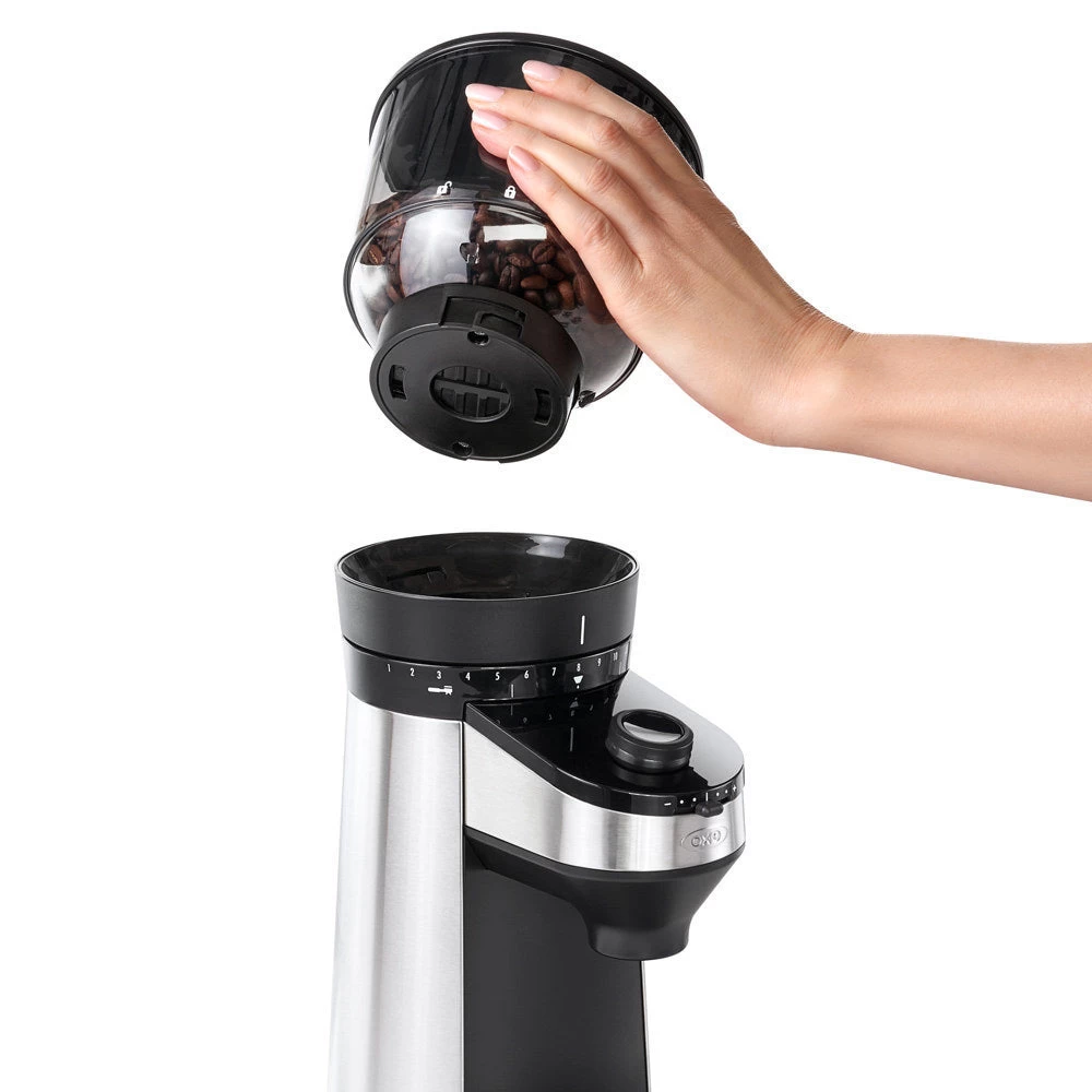 - Hopper keeps harmful UV rays away from delicate coffee beans to keep them fresh longer.