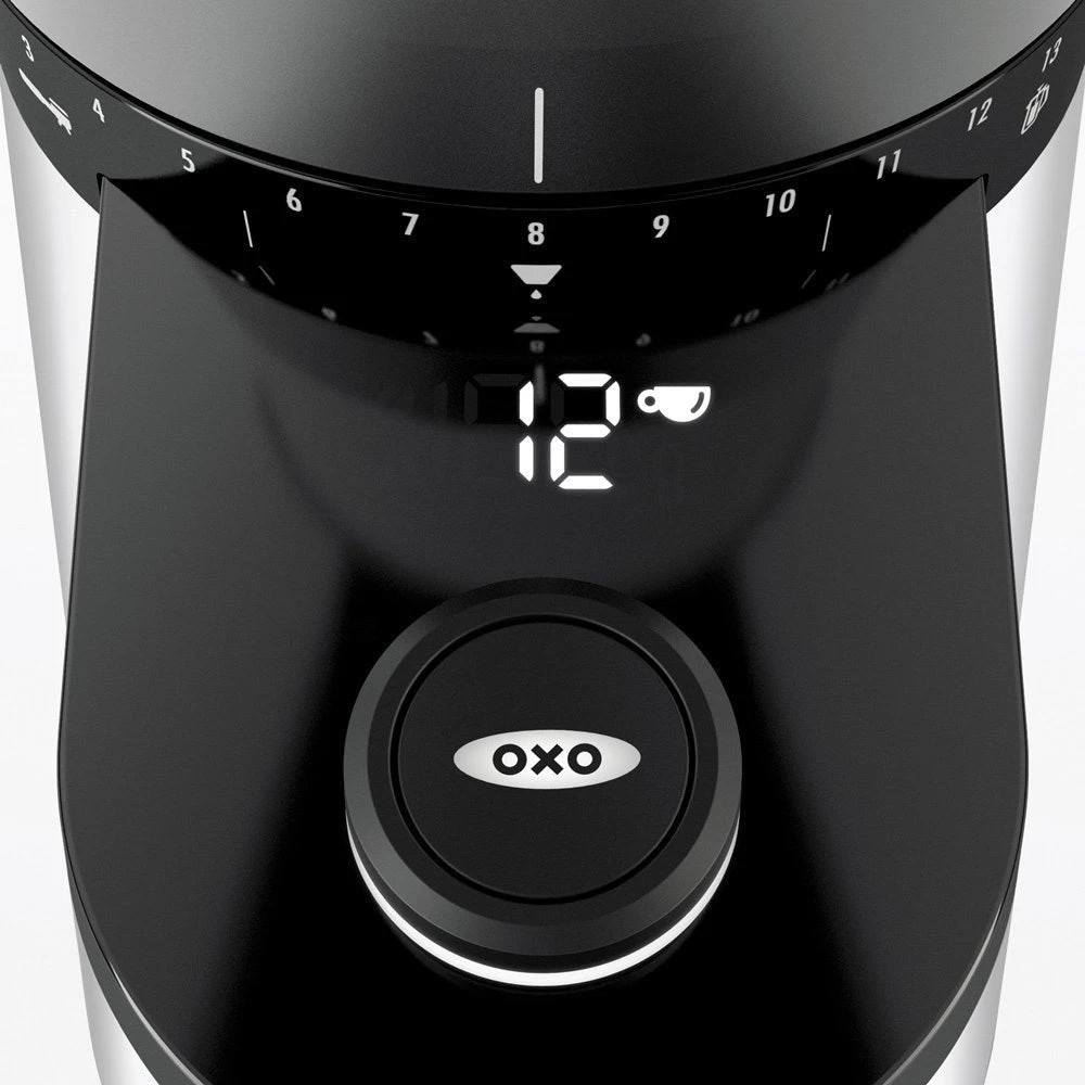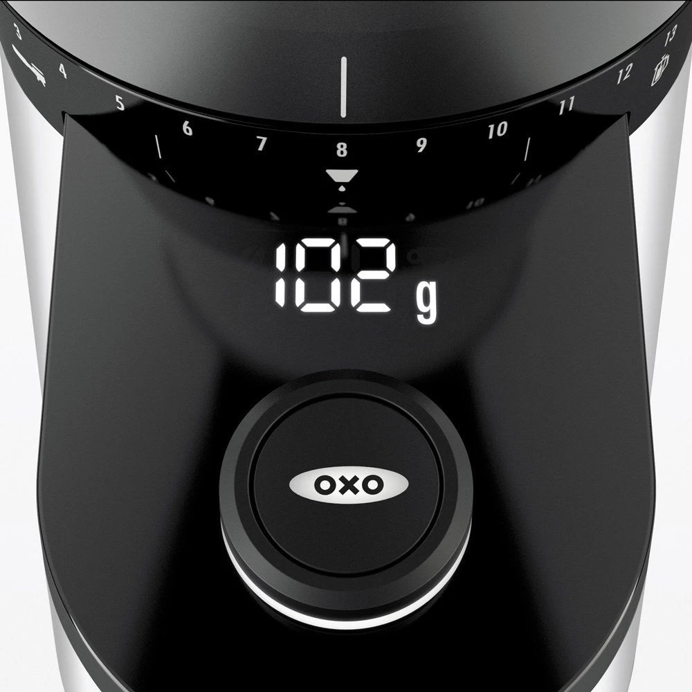 Measure and grind coffee beans with precision. This burr grinder has an integrated digital scale and has grind settings from fine to coarse so you get precisely the right grind to suit your tastes. The DC motor is designed to prevent overheating and the stainless steel conical burrs create a uniform grind for optimal flavor extraction. Grinds enough coffee for up to 12 brewed cups.