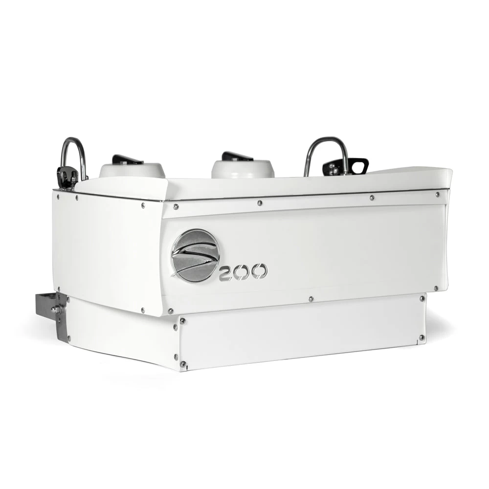 The overall height of the machine is 17″ so making a connection with your customers is easy to do, even while you are making drinks. The S200 has 2 groups with volumetric dosing, programmable temperature per group head, and cool-touch steam wands. Also available in black and can be customized to go with any café design.